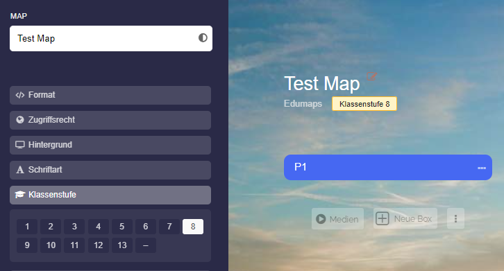 Klassenstufe Wenn Sie eine Klassenstufe auswählen, so erscheint eine kleine Karte der Klassenstufe unter dem Map-Titel. Angabe der Klassenstufe ⚙ klassenstufe
