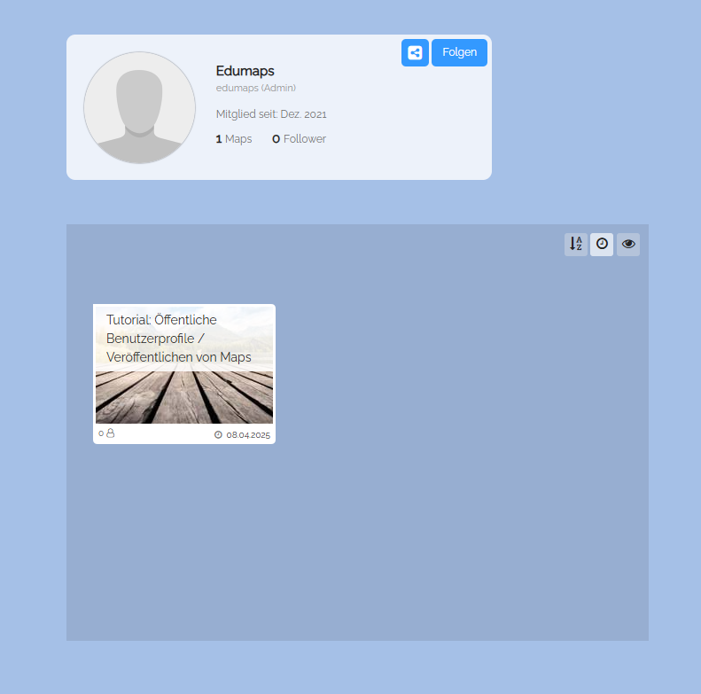 Sobald Sie Ihre erste Map veröffentlichen, wird eine öffentliche Profilseite für Sie angelegt.