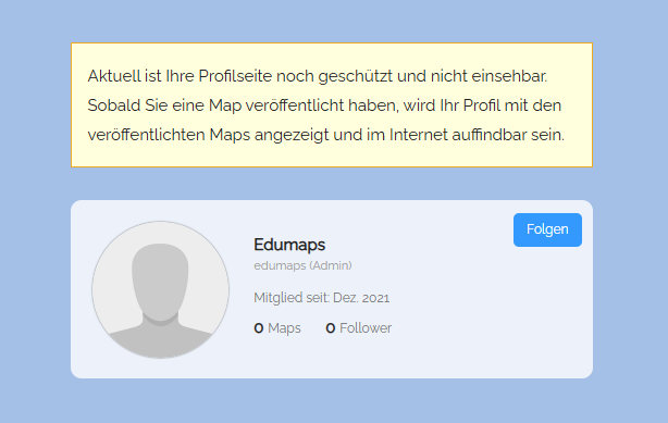 Haben Sie noch keine Map veröffentlicht, so ist Ihre Profilseite geschützt und wird anderen Benutzern nicht angezeigt.